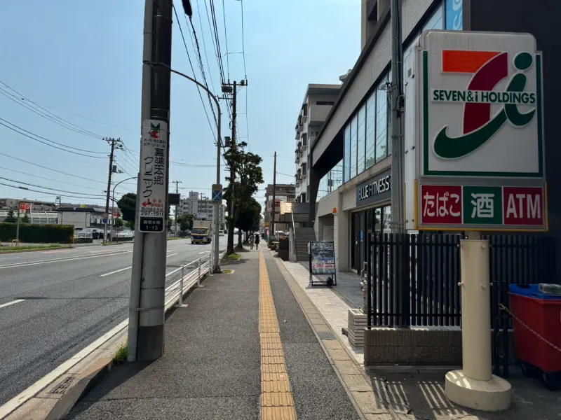 階段を降りた所の居酒屋さんの角を右に曲がり、幕張本郷駅を背にして直進します