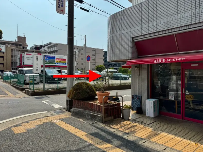 BLUE FITNESSさんを過ぎ、花屋のアリスさんの角を右に曲がります